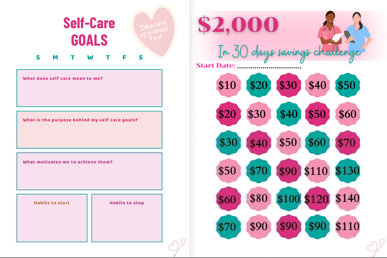 Introducing the “Boujie CNA Ultimate Goal Planner” – the perfect tool for manifesting, organizing, and tracking your aspirations. Whether your objectives are financial, academic, dietary, fitness-related, or encompass various aspects of life, this planner offers dedicated pages for comprehensive planning and organization. Also a $2,000 30 day money challenge. Extra pages included.