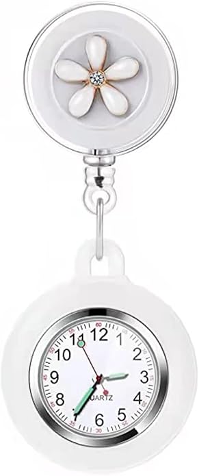 Retractable Nurse Watch for CNAs Nurses Doctors etc. Clip-on Hanging Lapel Nurse Watch with Silicone Cover Brooch Fob Pocket Watch & Badge Reel.